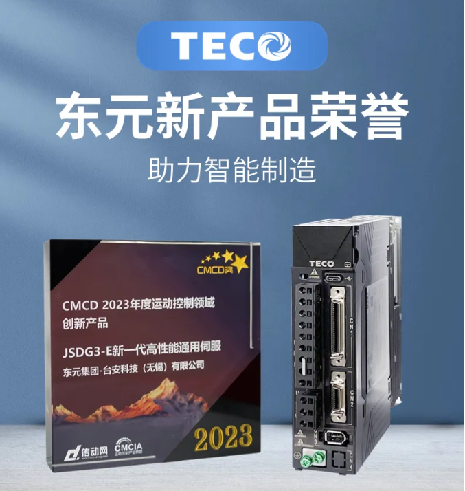 頒獎典禮表彰了伺服、運控/直驅領(lǐng)域優(yōu)秀企業(yè)品牌、創(chuàng )新技術(shù)、產(chǎn)品、行業(yè)應用。其中東元新產(chǎn)品JSDG3-E系列伺服,榮獲【CMCD2023年度運動(dòng)控制領(lǐng)域創(chuàng )新產(chǎn)品獎】。